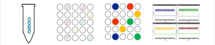 數(shù)字PCR即第三代PCR,即絕對(duì)定量PCR。與傳統(tǒng)技術(shù)不同,基于泊松分布原理,數(shù)字 PCR 技術(shù)將 DNA 或RNA 樣品分散成大量的微反應(yīng)單元(納升級(jí))中,然后對(duì)眾多微反應(yīng)單元內(nèi)的靶序列進(jìn)行單分子模板 PCR 擴(kuò)增、熒光檢測(cè)和統(tǒng)計(jì)學(xué)分析,實(shí)現(xiàn)絕對(duì)定量,不依賴(lài)于標(biāo)準(zhǔn)曲線和已知濃度的多個(gè)梯度標(biāo)準(zhǔn)品,直接檢測(cè)樣品中核酸的原始濃度。由于這種檢測(cè)方式具有比傳統(tǒng)熒光定量 PCR 更加出色的靈敏度和精確性,數(shù)字 PCR 迅速得到廣泛的關(guān)注,尤其在痕量核酸樣本檢測(cè)、復(fù)雜背景下稀有突變檢測(cè)、核酸拷貝數(shù)變異和基因表達(dá)量微小差異鑒定方面表現(xiàn)出的優(yōu)勢(shì)已被普遍認(rèn)可。